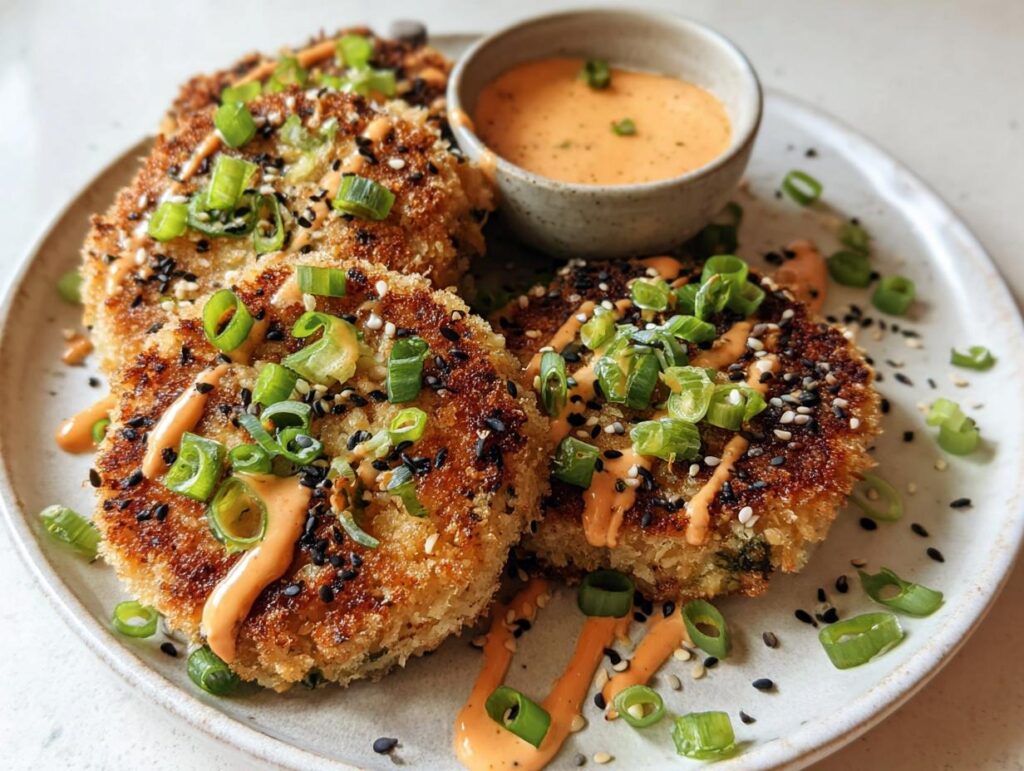 Crispy Asian-style tuna cakes with a zesty spicy mayo drizzle, perfect for quick appetizers or a high-protein snack. These cakes offer a satisfying crunch on the outside and a tender, moist interior, packed with umami flavor.