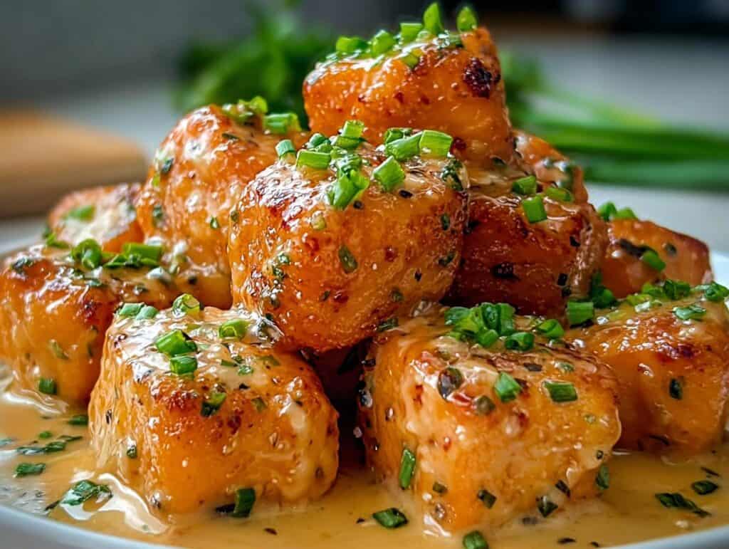 - Step 8: Garnish with fresh chopped parsley or cilantro, sliced green onions, and a sprinkle of sesame seeds if you like. Serve immediately and enjoy your amazing Crispy Bang Bang Salmon Bites!