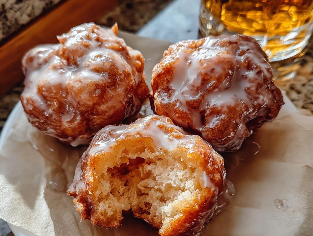 - Let the fritters cool slightly before glazing so the bourbon glaze melts perfectly without sliding off.