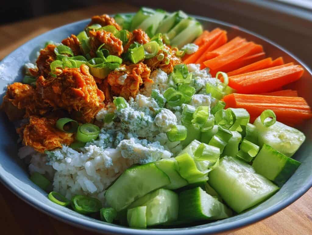 Enjoy a fresh, balanced, and protein-packed Buffalo Chicken Cottage Cheese Bowl. This recipe combines spicy buffalo chicken with cool cottage cheese and crisp vegetables for a satisfying meal.