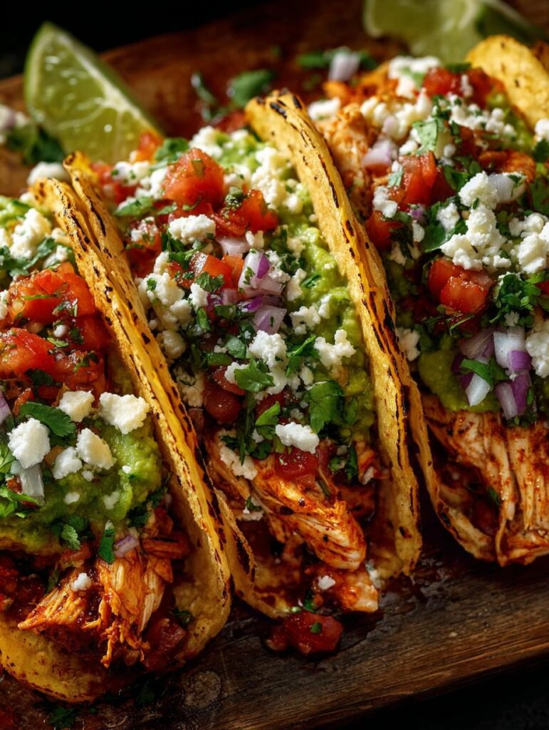 To store, keep the chicken in an airtight container in the fridge for up to 3 days. Reheat on the stove or microwave, ensuring it’s heated thoroughly to maintain its juicy texture. Meal prep is a great way to enjoy these tacos during the week.