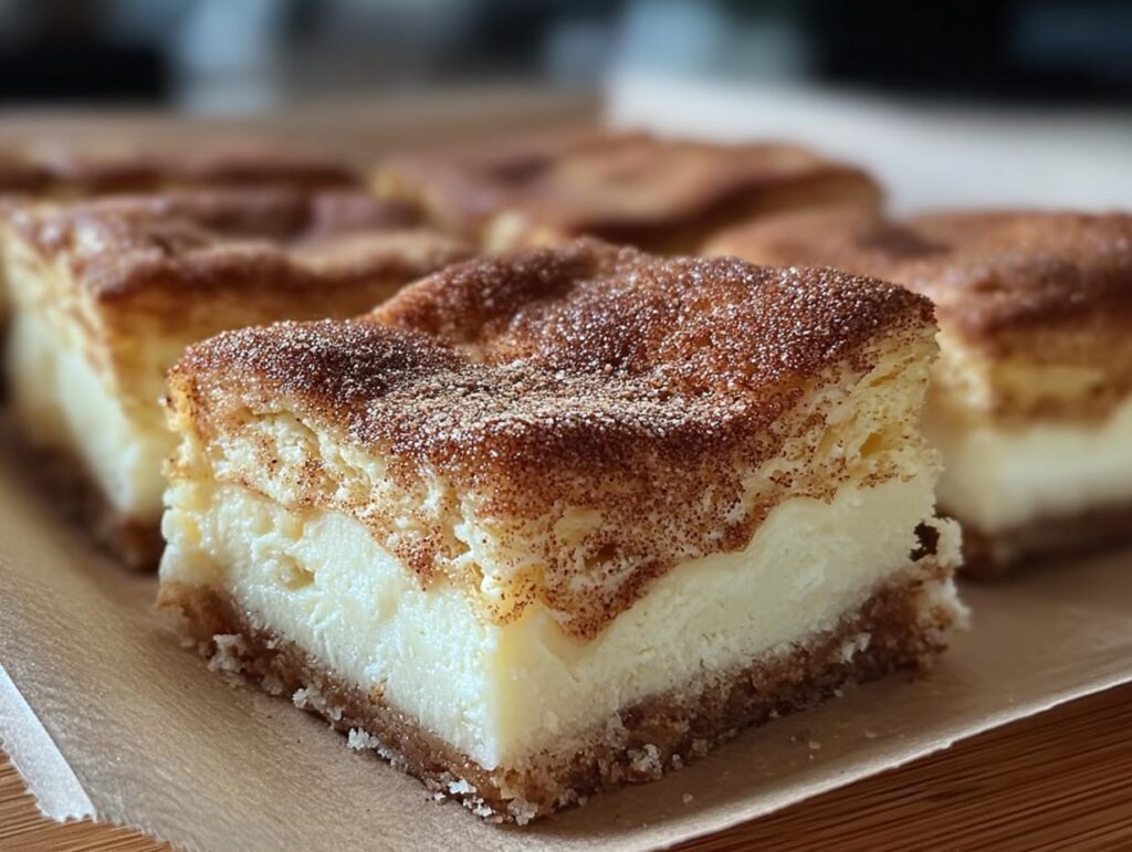 Unlike traditional fried churros, these bars offer a baked, cheesecake-infused experience. While you don’t get the same crispy, airy texture of a fried churro, you gain the smooth, decadent creaminess of cheesecake. The cinnamon-sugar topping still provides that signature churro flavor, making them a delicious hybrid that’s easier to serve and enjoy.