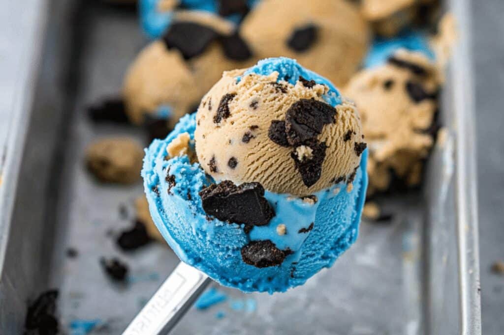 Cookie Monster Ice Cream typically contains heavy cream, sweetened condensed milk, vanilla extract, blue food coloring, and cookie pieces (usually Oreos and chocolate chip cookies). The homemade version doesn’t require eggs or cooking, making it an easy no-churn recipe.