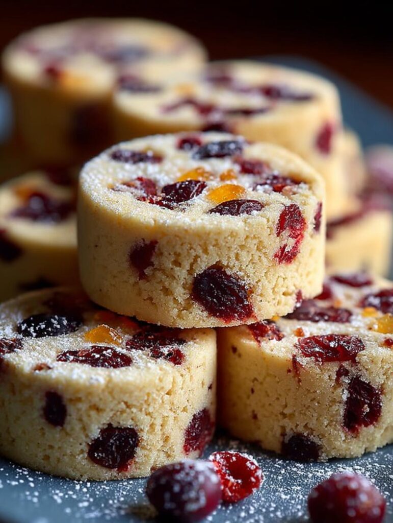 Buttery shortbread with cranberries and vibrant orange zest.