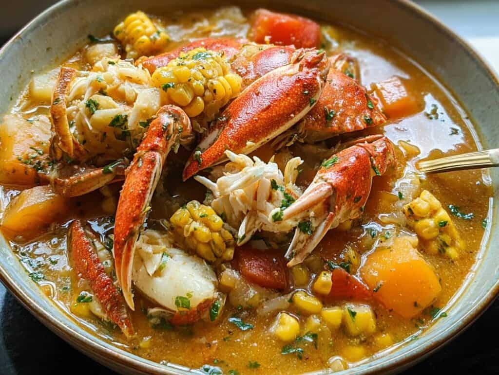 - Step 7: Ladle the hot, steaming crab stew into bowls. Garnish generously with ¼ cup fresh parsley, chopped. Serve immediately with lemon wedges on the side for a bright, zesty finish.