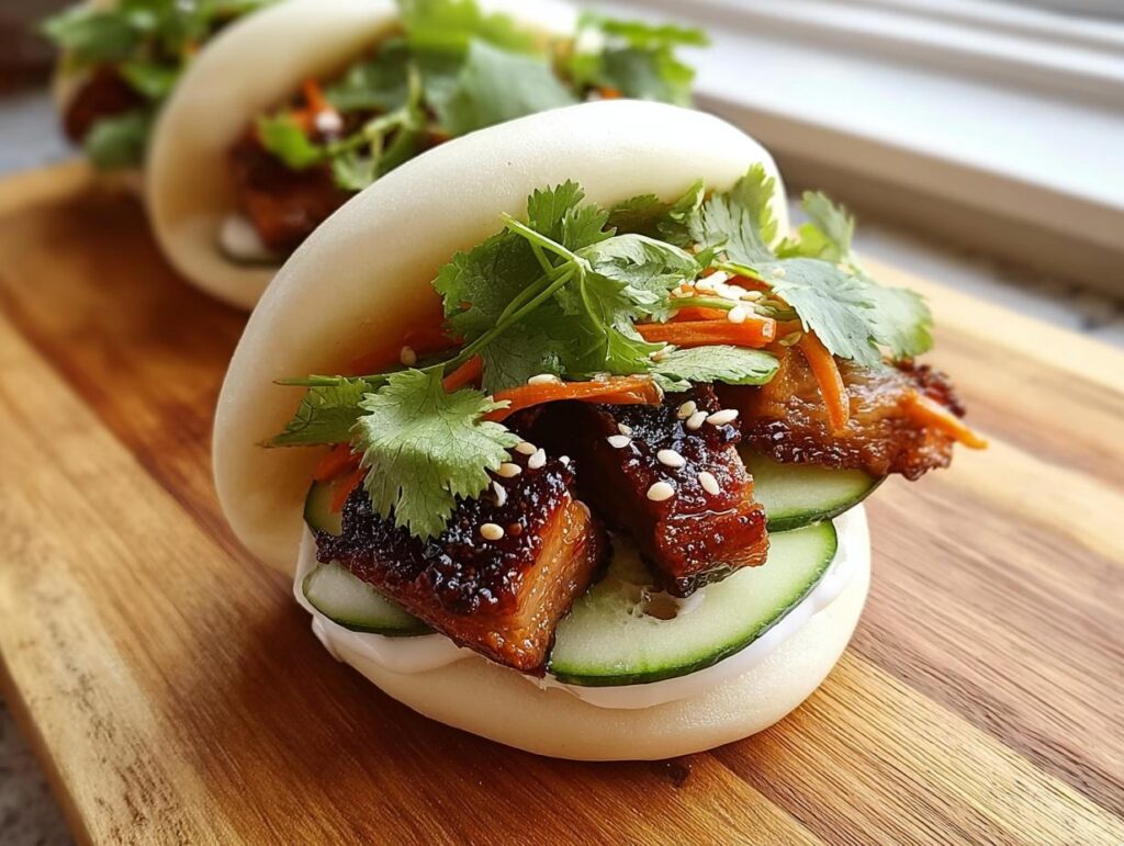 Gathering the right crispy pork belly bao ingredients is key to recreating that authentic street food magic. For the bao buns, you’ll need 2 cups all-purpose flour for that fluffy texture, 2 teaspoons active dry yeast to make them rise, and 2 tablespoons sugar to feed the yeast and add a hint of sweetness. Don’t forget 3/4 cup warm water (not hot!) to activate the yeast, 1/2 teaspoon salt for flavor, and 1 tablespoon vegetable oil for a softer dough. For the star of the show, the pork belly, grab 1 pound pork belly with a good balance of meat and fat. Season it simply with 1 teaspoon five-spice powder for that classic Asian aroma, 1 teaspoon salt, and 1/2 teaspoon pepper. Finally, for the delightful toppings, have on hand 1 cup pickled cucumbers for a tangy crunch, 1/4 cup hoisin sauce for that sweet and savory glaze, and 1/4 cup fresh cilantro for a burst of freshness.