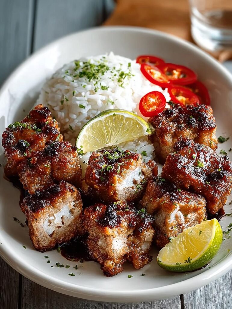 - Drain and Serve: Use a slotted spoon to transfer the pork chunks to a plate lined with paper towels to drain excess oil. Serve immediately with fresh lime wedges.