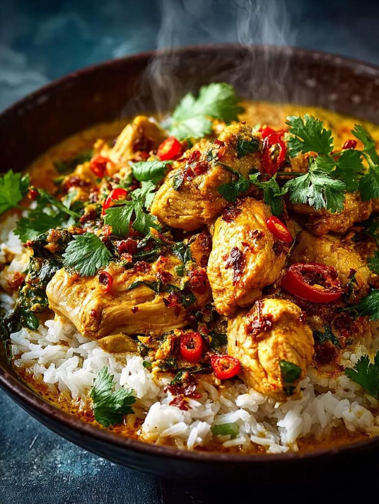 Curried Coconut Chicken Rice is a flavorful dish combining tender chicken with aromatic spices and creamy coconut milk.