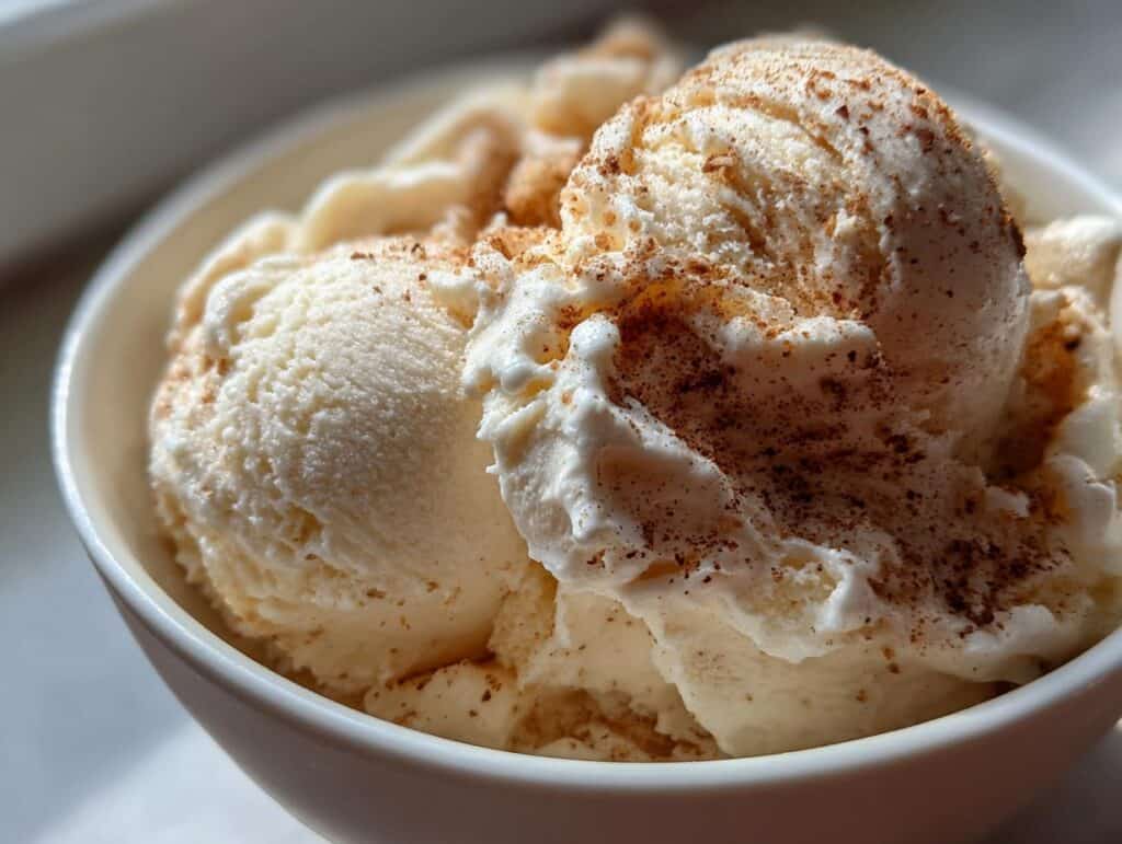 Keywords: Eggnog Ice Cream, Holiday Dessert, No-Churn Ice Cream, Christmas Ice Cream, Spiced Ice Cream, Homemade Ice Cream, Eggnog Recipe