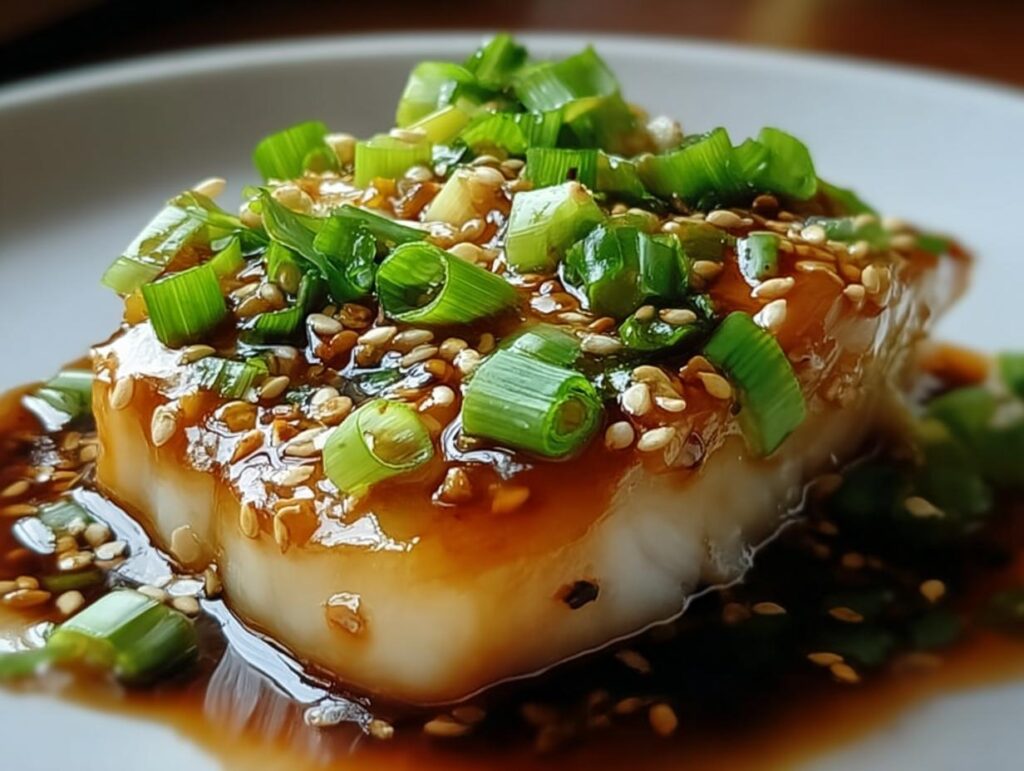- Step 9: For the final touch, garnish with 1 green onion, thinly sliced, and a sprinkle of sesame seeds. It adds a lovely freshness and a satisfying crunch to your flavorful ginger soy cod. Enjoy this delightful dish!