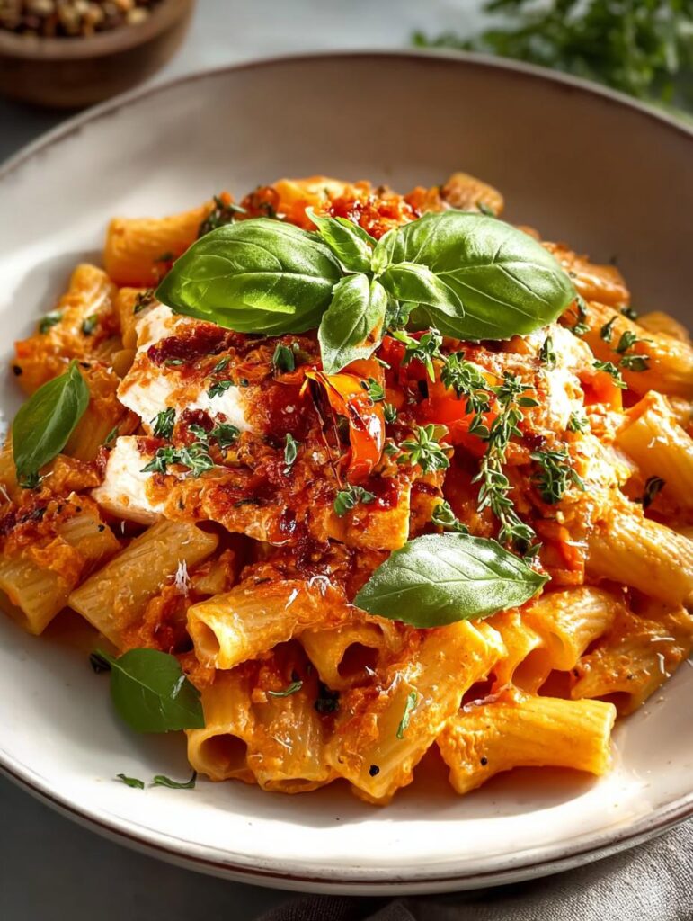 - Combine the cooked pasta with the sauce. Toss gently until every strand is beautifully coated. Finally, garnish with fresh basil and a sprinkle of red pepper flakes for a pop of color.