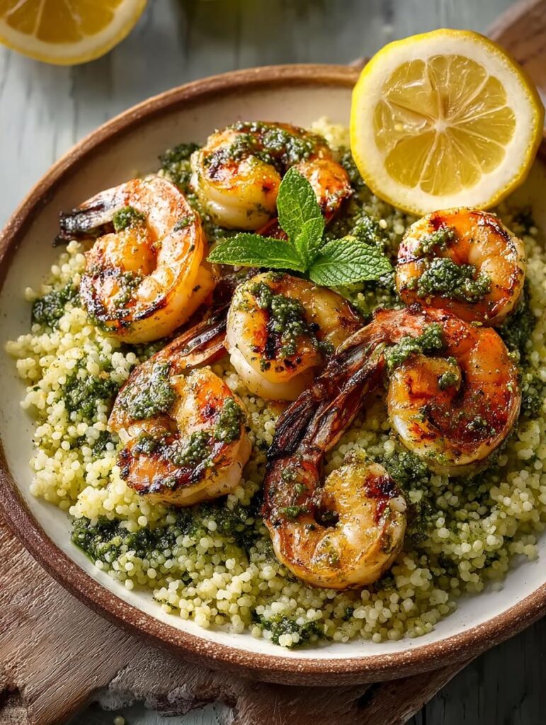Grilled Lemon Shrimp with Pesto Couscous is a quick and flavorful dish that combines succulent shrimp with aromatic pesto couscous.