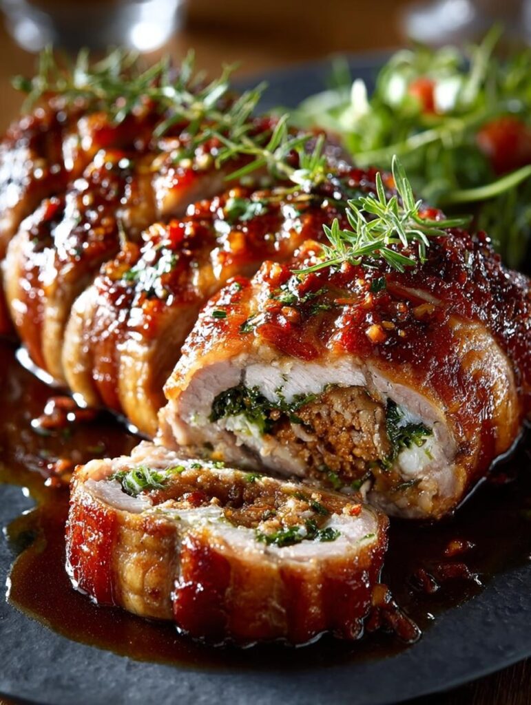 This dish is a winner for several reasons. First, it combines the rich flavors of pork and bacon, which are always crowd-pleasers. Second, it’s easy to prepare, making it perfect for busy weeknights or entertaining guests. Third, the stuffing, which includes apples and sage, adds a delightful twist that balances the dish beautifully. Furthermore, this Hairy Bikers pork dish is versatile; you can serve it with various sides like roasted vegetables or mashed potatoes. Lastly, it’s a wholesome meal that offers a satisfying protein punch, making it a healthy choice for dinner. With so many benefits, it’s no surprise that stuffed pork recipes are increasingly popular.