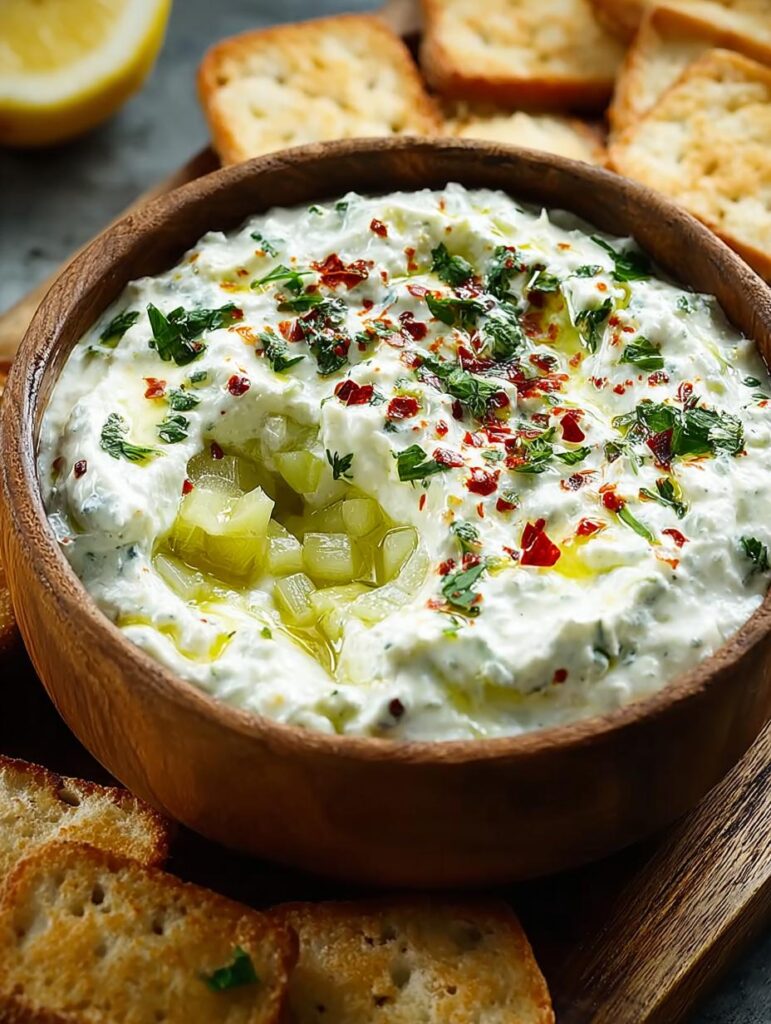 A deliciously creamy high protein pepperoncini dip that balances tang and flavor, perfect for gatherings or snacks.