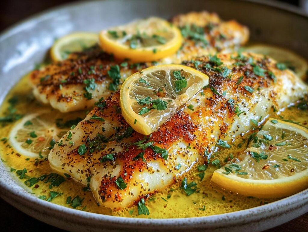 - Step 5: Gently transfer the fish fillets to a serving platter. Garnish with fresh lemon slices and a little extra chopped parsley for that restaurant-ready presentation. Serve your delicious Pan Seared Lemon Butter Fish immediately and enjoy!