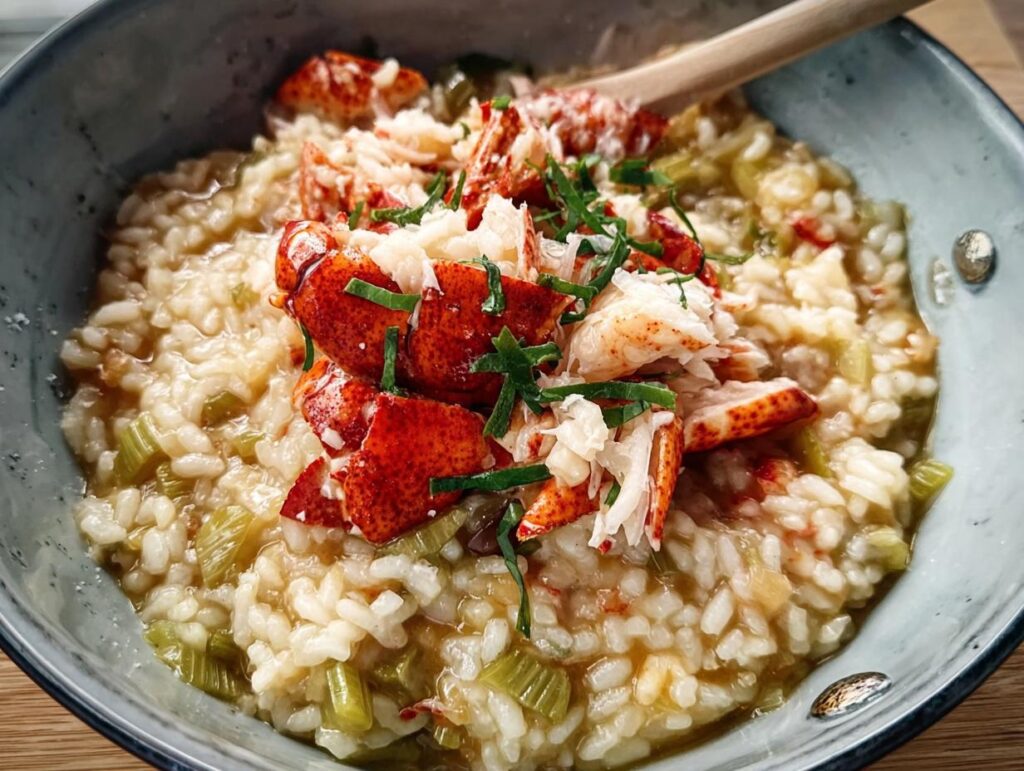 Experience the creamy luxury of Maine Lobster Risotto with Sautéed Leeks & Gouda, a dish that perfectly balances comfort and elegance, offering a taste of the coast.