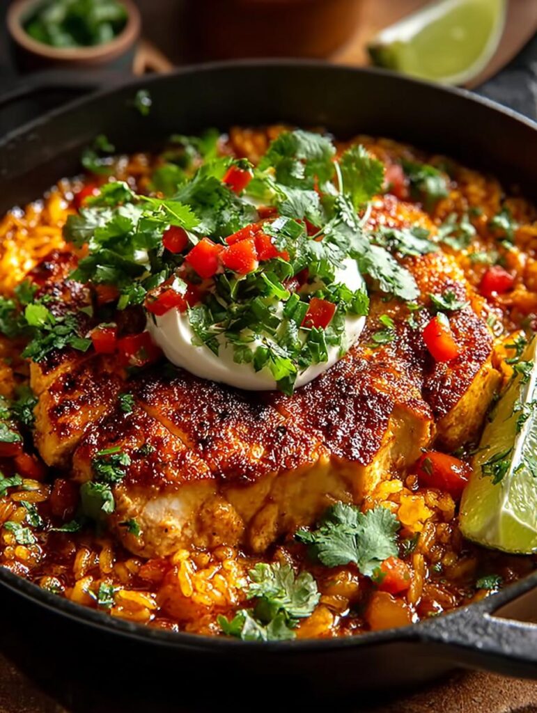 One-Skillet Mexican Chicken and Rice is a flavorful and convenient dish that combines chicken, rice, and spices in one pan.