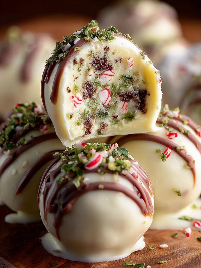 Decadent peppermint truffles with creamy centers and festive toppings.