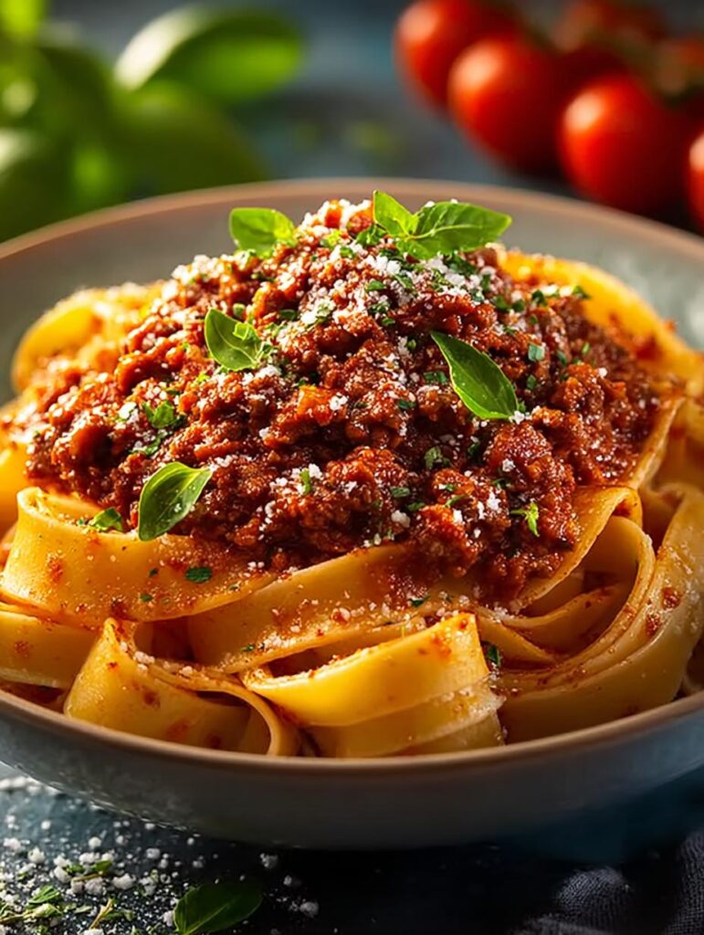 Ragù alla Bolognese with Pappardelle is a rich and hearty Italian meat sauce served with wide pasta.