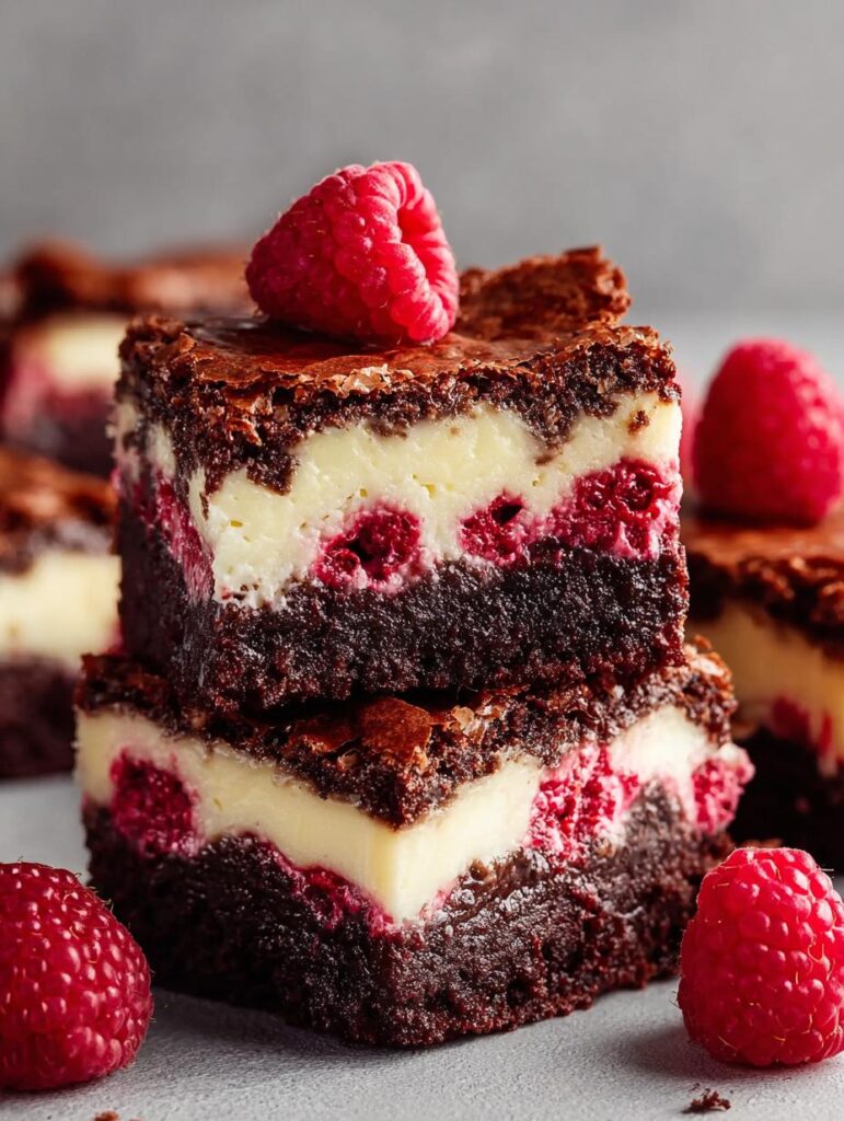 Indulge in these Raspberry Cheesecake Brownies that blend rich chocolate and sweet-tart raspberries for a delightful dessert experience.