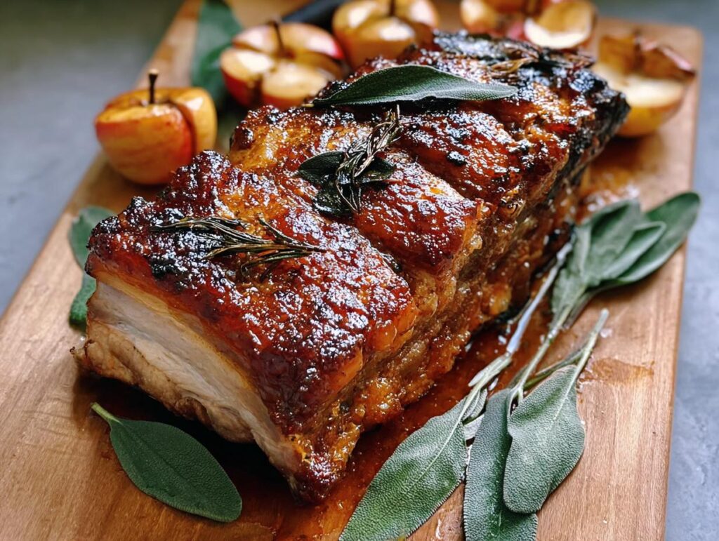 Sage Roasted Pork Belly is a dish that features crispy skin and tender, flavorful meat infused with the earthy notes of sage. It’s often served with roasted apples and a fresh Greek salad for a balanced meal.