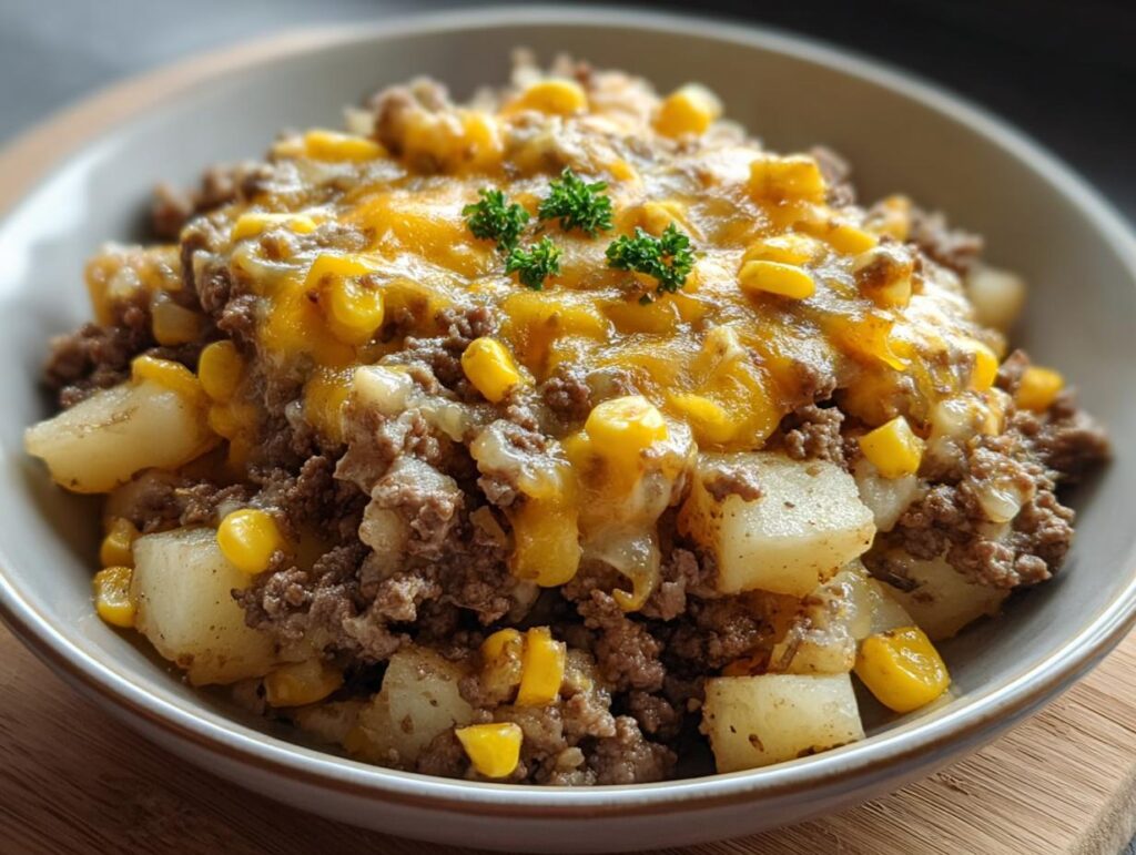 This hearty slow cooker hamburger hash recipe is a simple, set-it-and-forget-it meal. It combines ground beef, potatoes, and cheese for a delicious one-pot dinner perfect for busy weeknights.