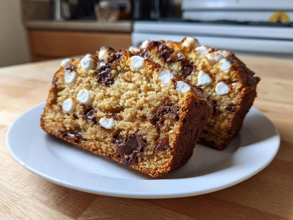 This S’mores Bread recipe creates a sweet, dessert-inspired loaf. It features graham cracker, chocolate, and marshmallow flavors baked into a moist bread, perfect for a treat.