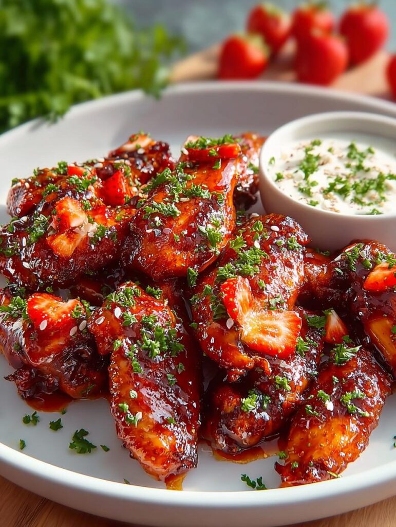 Sweet and Spicy Strawberry Barbecue Hot Wings combine sweet strawberries with smoky barbecue for a delicious taste explosion.