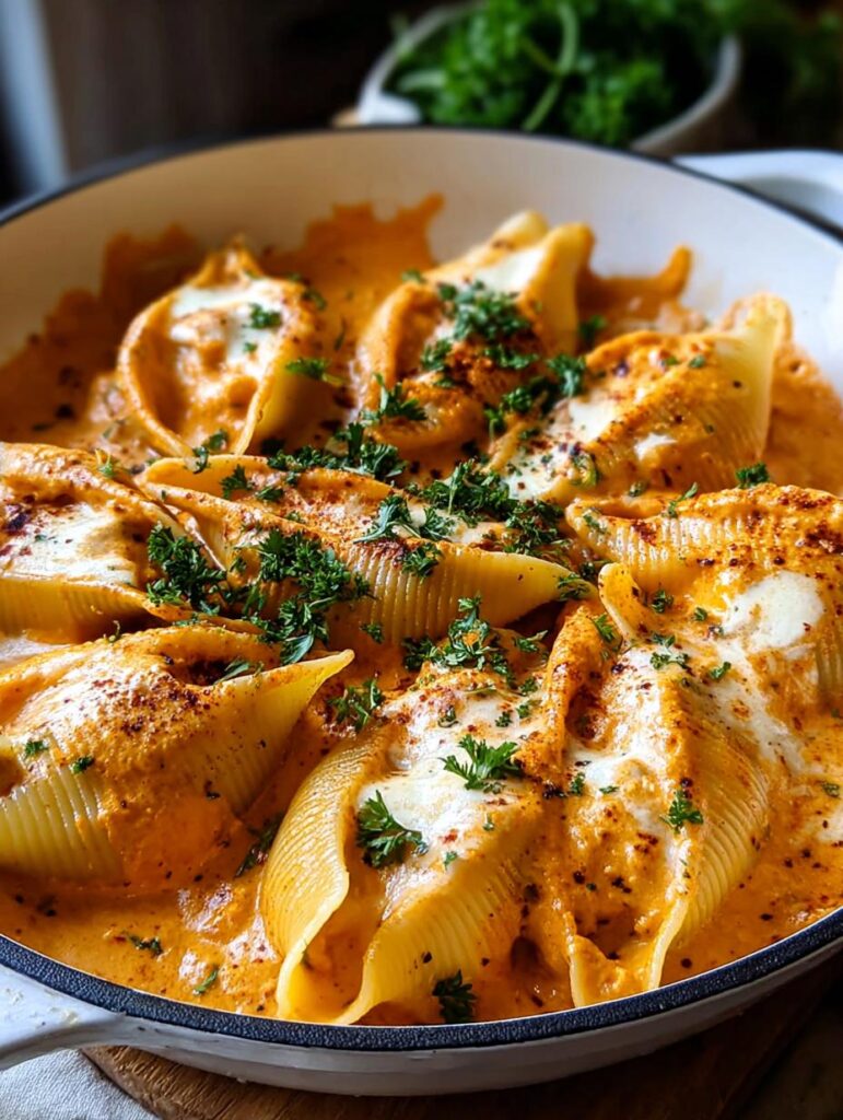 - Step 11: Before serving, sprinkle some freshly chopped parsley over the top for a vibrant pop of color and fresh aroma. Enjoy your incredible stuffed shells pumpkin cream!