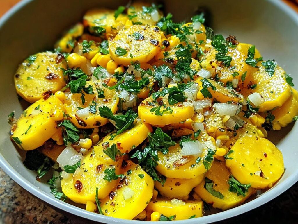 A vibrant and flavorful dish combining fresh summer squash and sweet corn, perfect for any occasion.