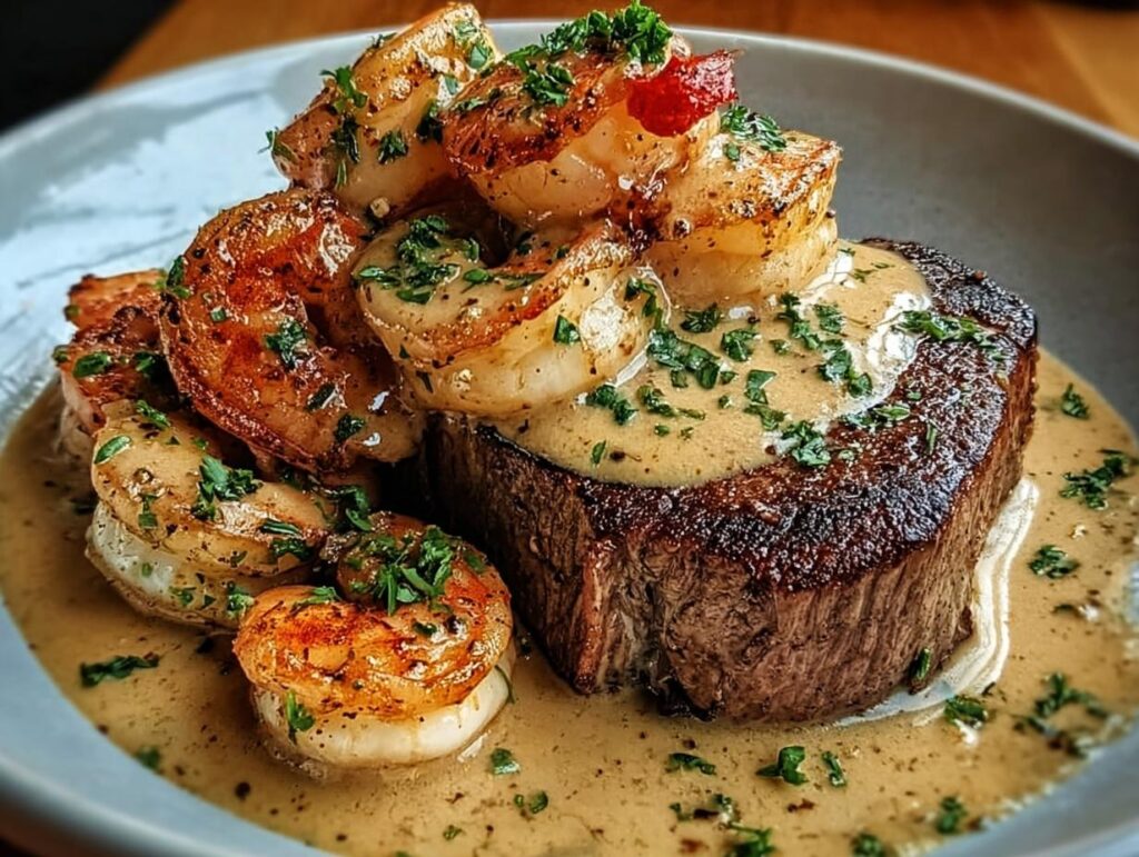 This Surf and Turf with Creamy Garlic Sauce recipe combines tender steak and succulent shrimp, all coated in a rich, flavorful garlic cream sauce. It’s a luxurious yet easy-to-make dish perfect for any occasion.