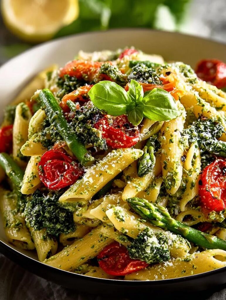 This dish is not only tasty but also loaded with numerous benefits. First, it’s a fantastic source of vitamins and minerals from fresh vegetables, promoting a healthy diet. Second, it’s a plant-based pasta with vegetables, making it perfect for vegans and those seeking a dairy-free option. Third, the creamy basil cashew sauce brings a delightful richness without any dairy, making it a fantastic dairy-free pasta with greens. Fourth, it’s easy to prepare, perfect for busy weeknights. Fifth, you can customize it with seasonal veggies, making it versatile. Lastly, it’s a filling meal that satisfies without being heavy, perfect for those looking for a healthy vegan pasta with vegetables.