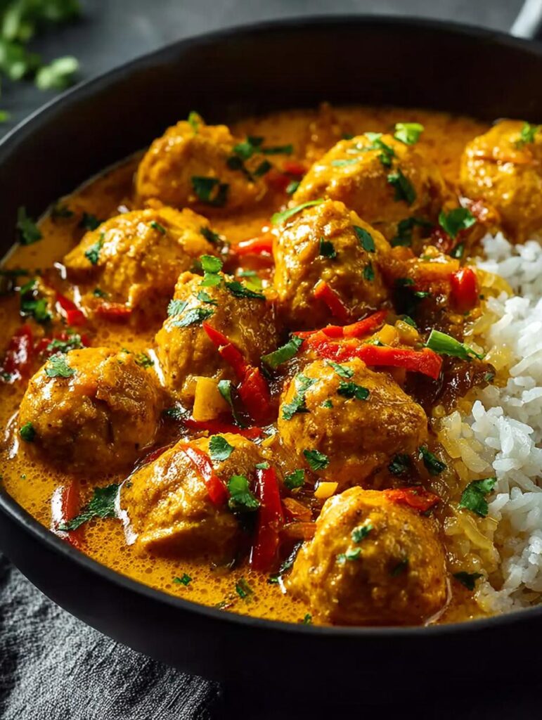 Keywords: Coconut Curry Chicken, Meatballs, Weeknight Dinner, Easy Recipe